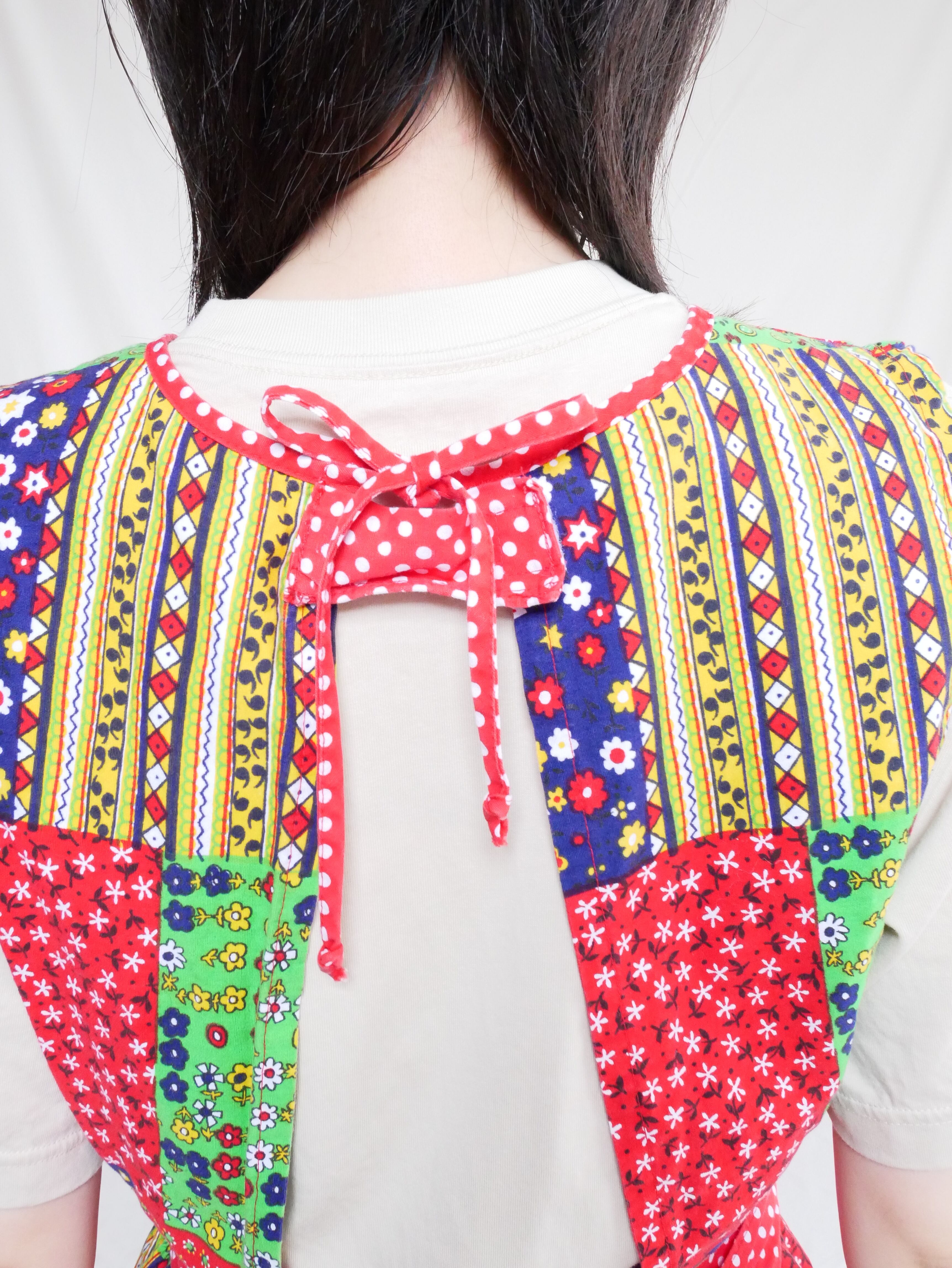 1番人気の70年代のパッチワークエプロンワンピースの赤。