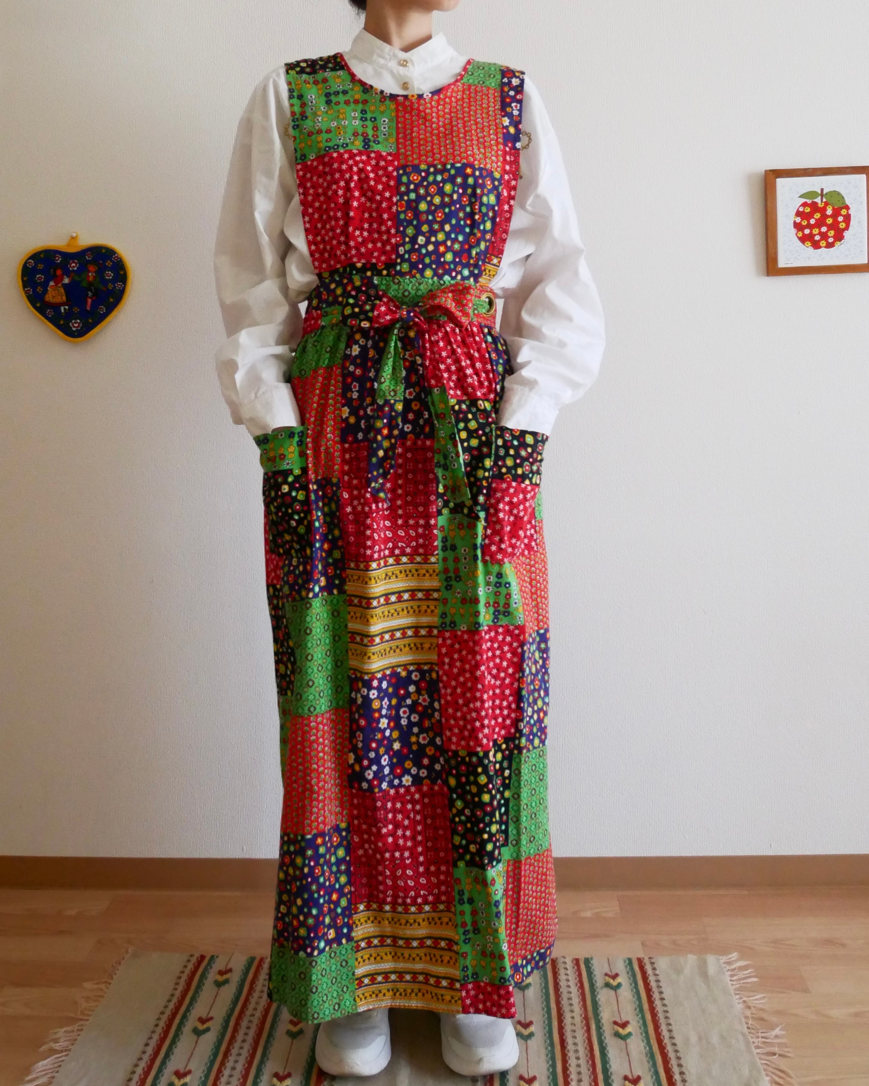 通常はリボンとポケットのお色が赤に白のドットですが、こちらはワンピースと同じ生地で作られていてレアなデザイン。