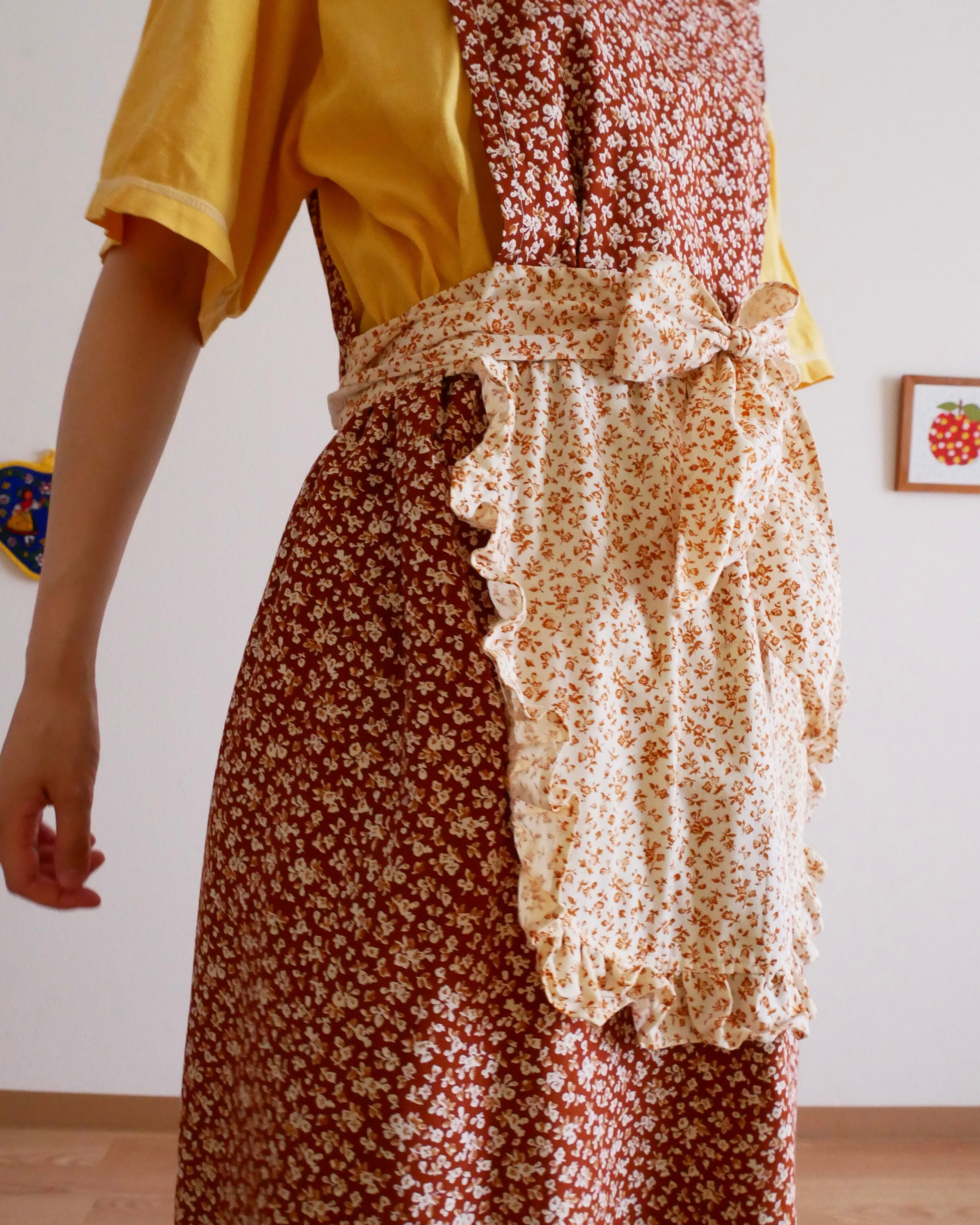 また、ミニエプロンとリボンに何ヶ所か、お花と同じ色の茶色いシミがありますが、目立ちません。